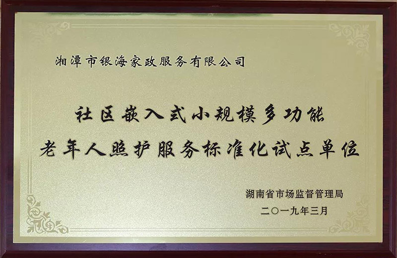 湘潭市銀海家政服務(wù)有限公司成為 “嵌入社區(qū)式小規(guī)模多功能老年人照護(hù)服務(wù)標(biāo)準(zhǔn)化試點(diǎn)”授牌單位。