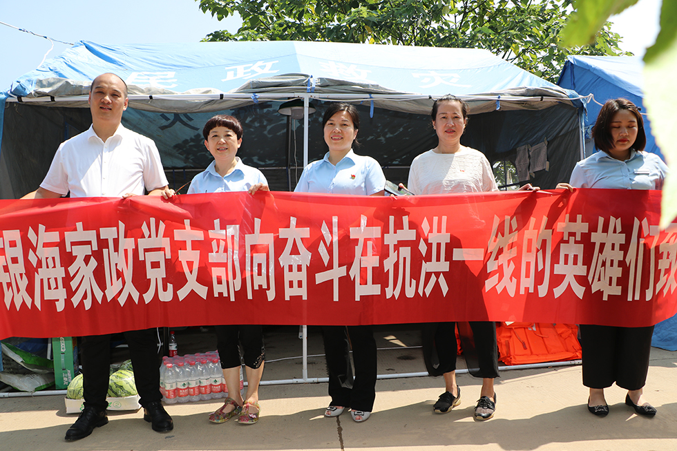 今天上午,銀海家政董事長(zhǎng)王朝暉攜黨支部書(shū)記周艷純及黨員、預(yù)備黨員一行人,帶著解暑物資前往五里堆街道和窯灣值守點(diǎn),看望、慰問(wèn)連續(xù)多日奮戰(zhàn)在防汛抗洪一線(xiàn)工作人員,并對(duì)他們?cè)诳购閾岆U(xiǎn)中做出的巨大貢獻(xiàn)表示衷心感謝。