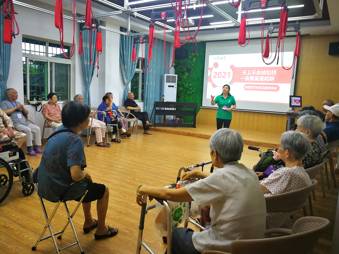 銀海倆寶貝窯灣康養(yǎng)中心開(kāi)展防范非法集資宣傳活動(dòng),由黨支部書(shū)記周艷純主講。
