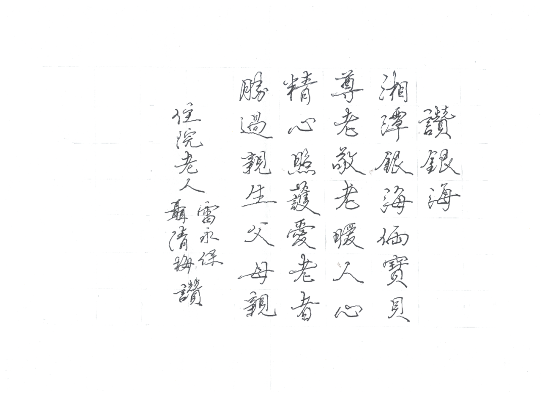 以下作品為銀海倆寶貝入住老人雷永保爺爺所作: