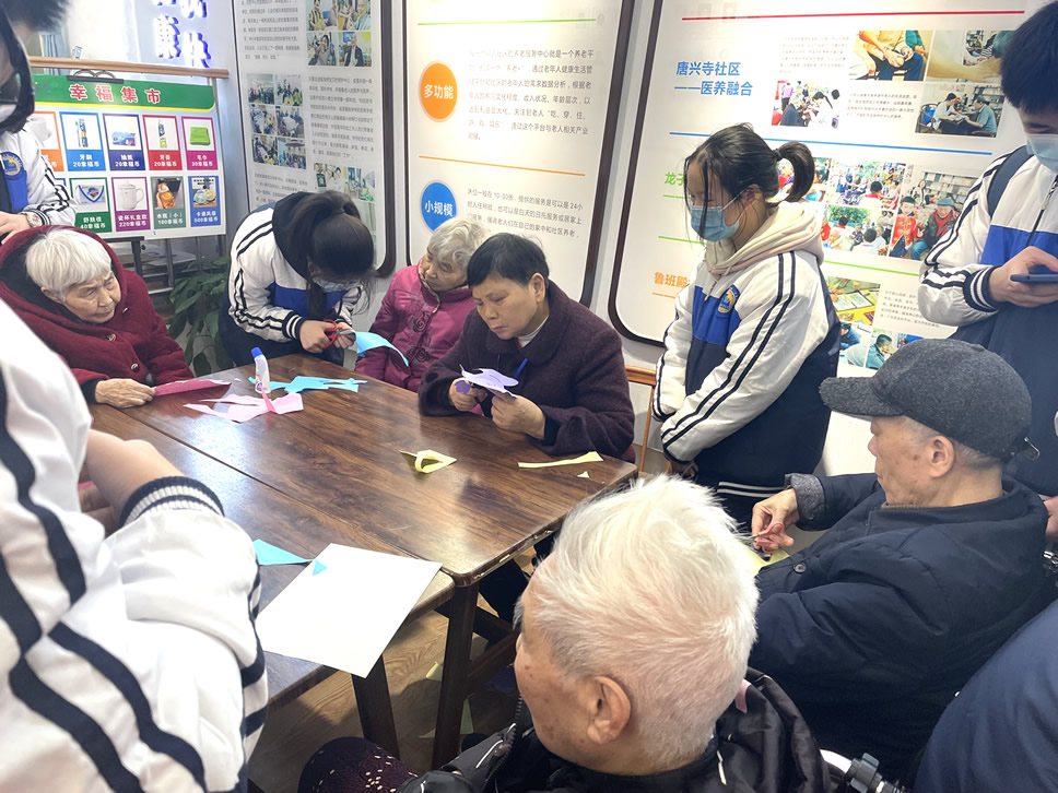 當爺爺奶奶們看到一張張青春充滿活力的臉龐圍繞在他們周圍,心中也不由得輕快了許多。有同學(xué)自告奮勇,提出為爺爺奶奶表演節(jié)目,于是一幕幕精彩的畫面,輪番上演。熱情洋溢的拉丁舞,朝氣蓬勃的紅歌合唱,青春的力量無不感染著爺爺奶奶們,那一刻他們的激情也被點燃了,他們忘記了吃飯的時間,甚至不覺得身體疲憊,最后在依依不舍的掌聲中歡送走了這群活力滿滿的孩子們。