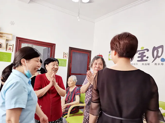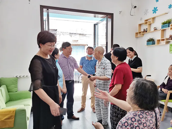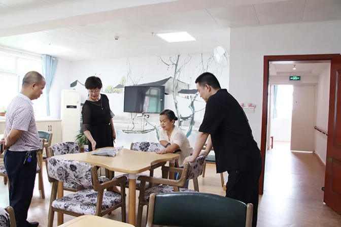 考察團一行在銀海倆寶貝董事長王朝暉女士、公司黨支部書記周艷純女士等人的陪同下先后參觀了即將開業(yè)的雨湖區(qū)唐興寺社區(qū)長者醫(yī)養(yǎng)中心、岳塘區(qū)菊花塘社區(qū)長者照護之家,聽取了銀海倆寶貝總體概況、規(guī)劃布局、建設運營,關于老人們日常照料、文娛活動等情況介紹;