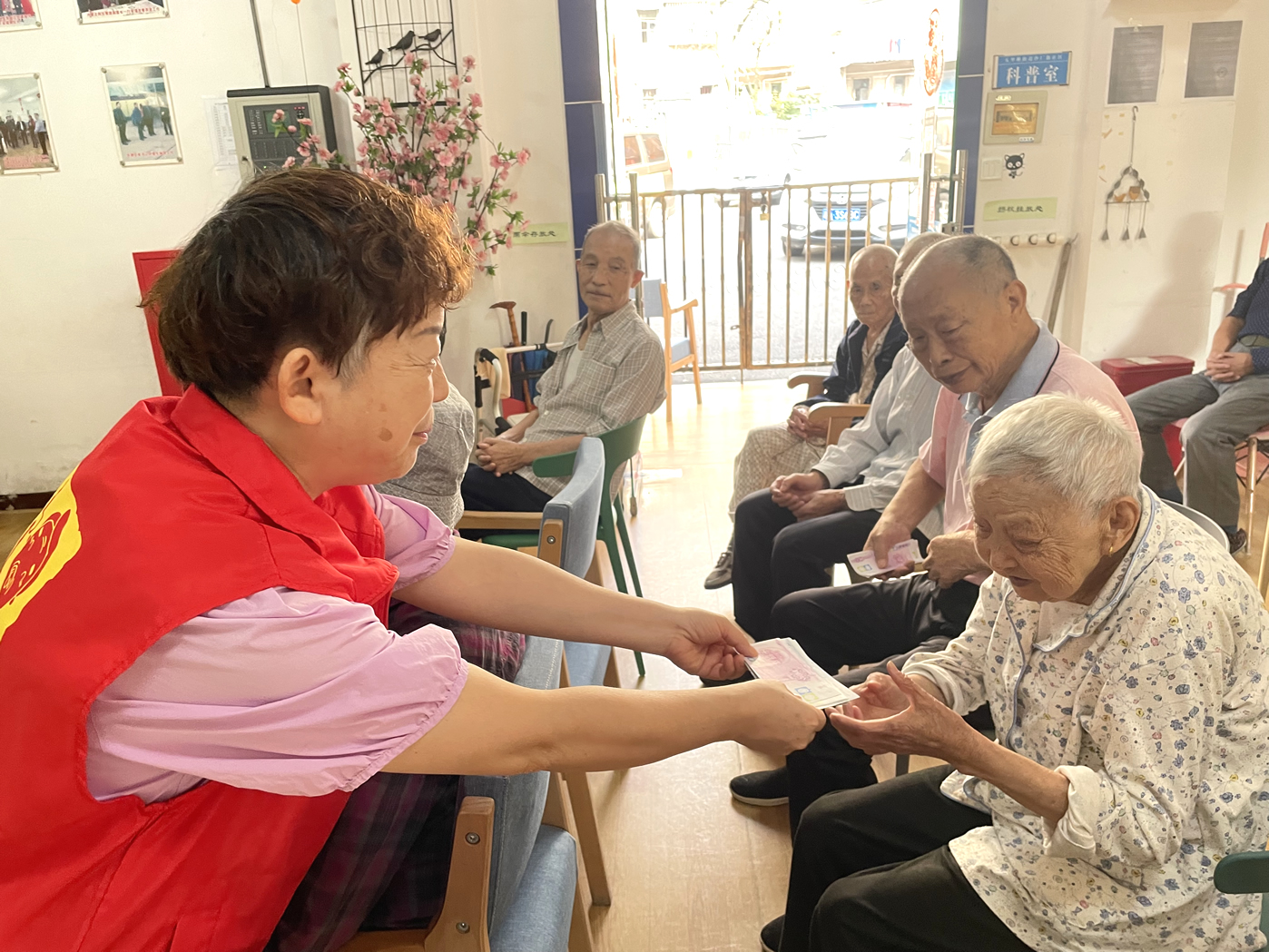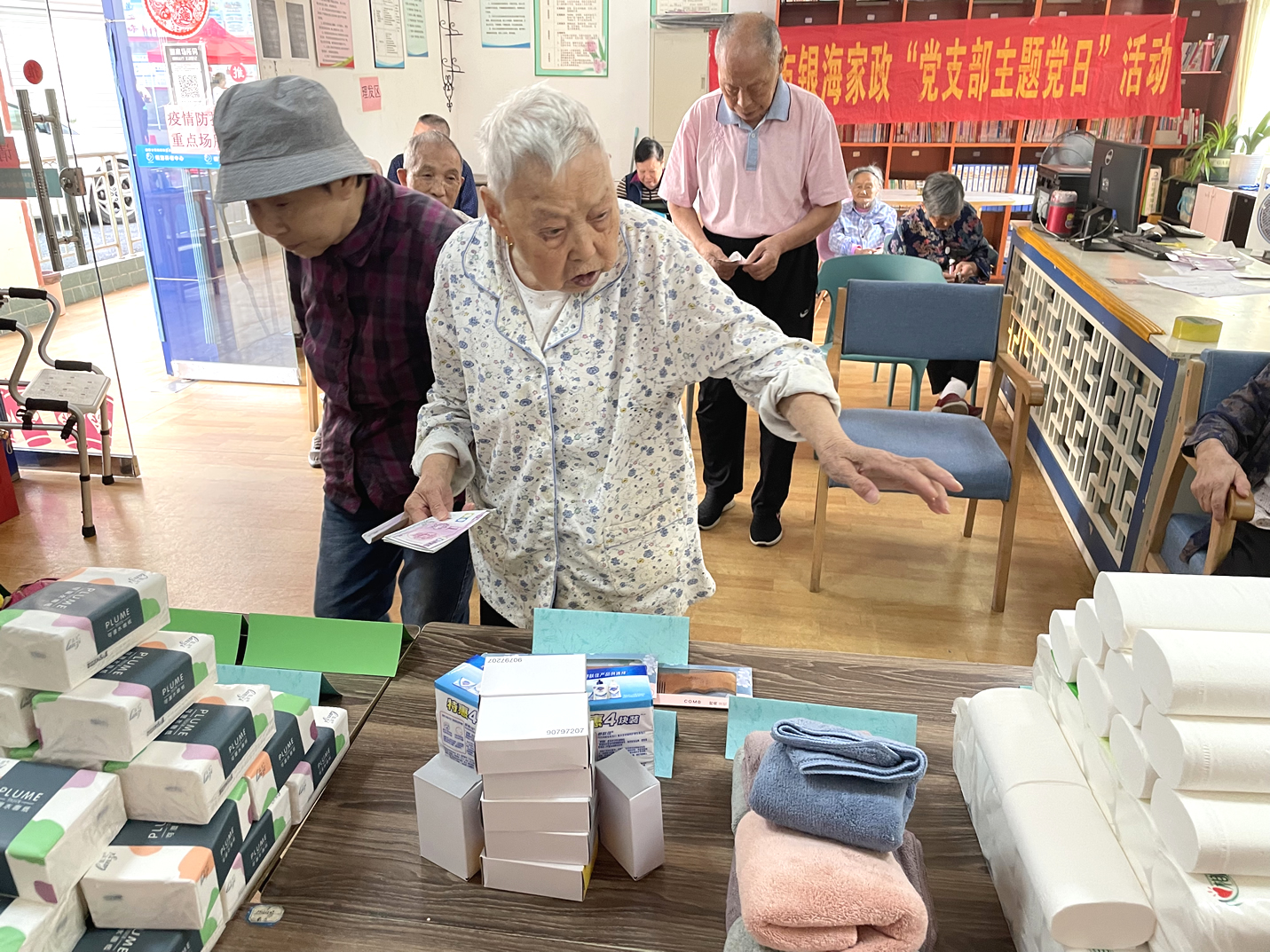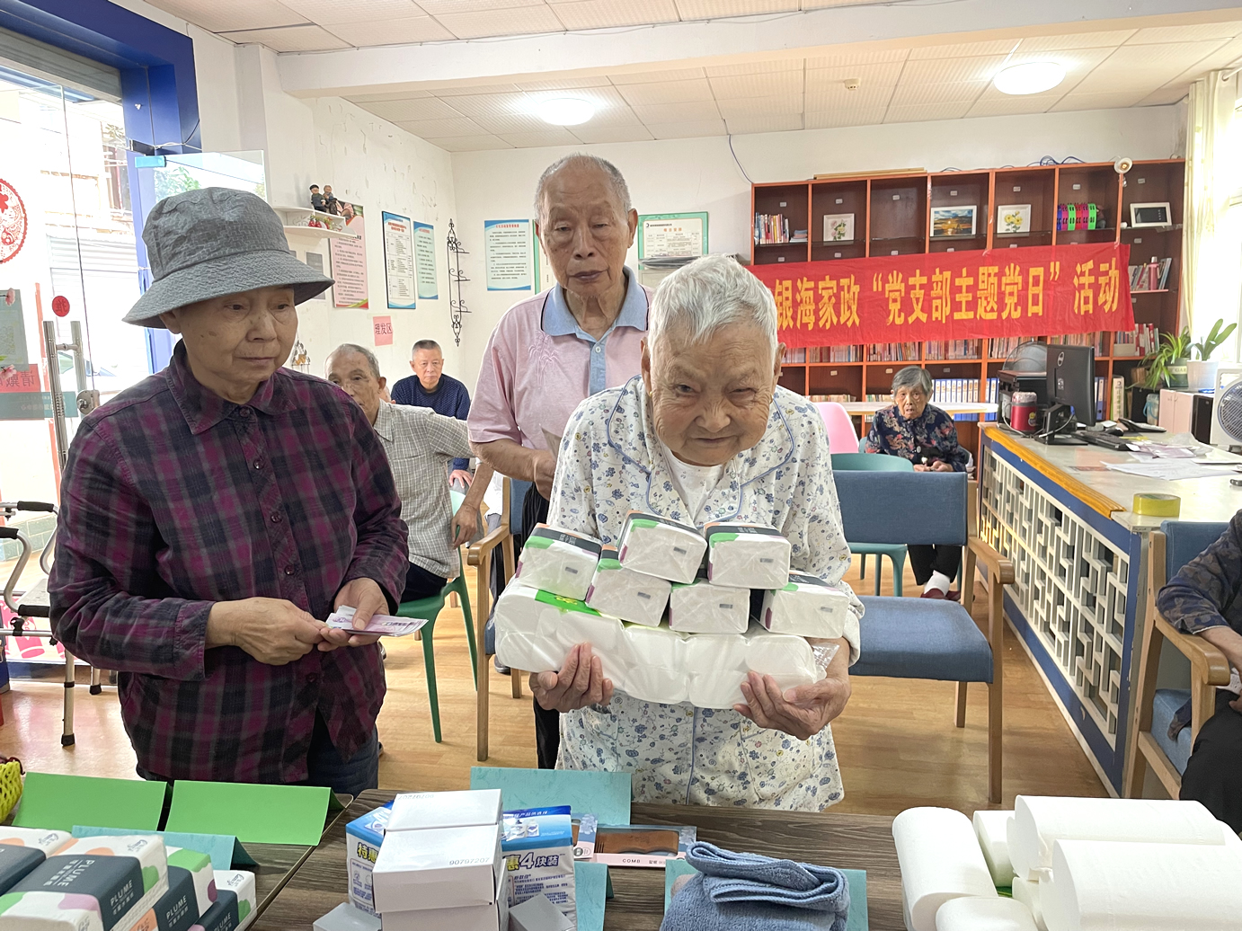 長者們?nèi)粘5幕顒佑校?/span>擇菜、澆花、養(yǎng)魚、遛鳥、還有各類康樂活動、康復(fù)訓(xùn)練等等,他們在收獲健康、快樂、成就感的同時,也賺到了不少的工資——幸福幣。每個季度開放一次的幸福銀行兌換日里,爺爺奶奶則可以用自己的“工資”開啟隨心購模式,爺爺奶奶們可以用掙到的幸福幣直接在院內(nèi)購買生活用品。