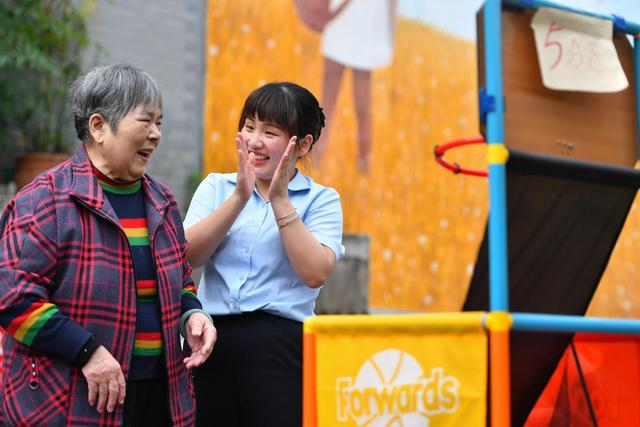 每天的活動課是爺爺奶奶們最喜歡的。體驗音樂療法中的音樂照顧課程,感受SET紅繩康復訓練,體驗豐富多彩的趣味游戲,挑戰(zhàn)不同形式的學習題目……活潑開朗愛笑的劉夢,每天讓這一方院落充滿生機,她積極探索各類適宜老人的活動,并勇于嘗試,和團隊一起根據(jù)老人的身心情況、興趣特征等加以改進,不斷收獲老人好評。