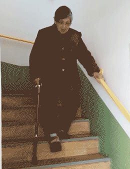 唯一的幫手是她那根小小的拐杖,上下樓梯時(shí),一步一個(gè)臺(tái)階,又快又穩(wěn),和其他爺爺奶奶們形成了鮮明的對(duì)比。