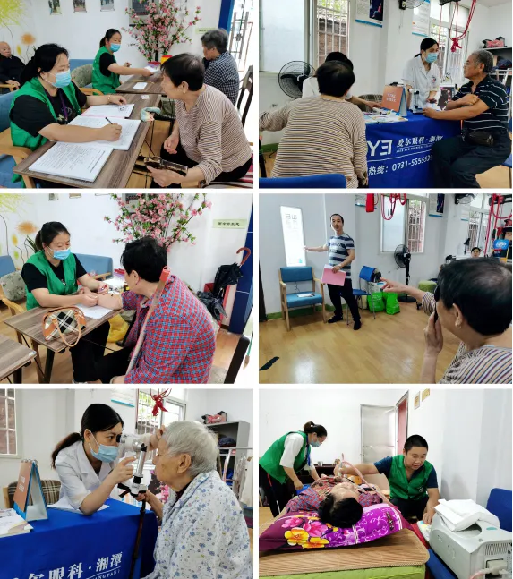 醫(yī)務(wù)人員一來到養(yǎng)老中心就忙了起來。他們?yōu)闋敔斈棠痰怯浶畔?、測(cè)量身高體重、量血壓、抽血、做心電圖、B超、視力檢測(cè)等檢查。