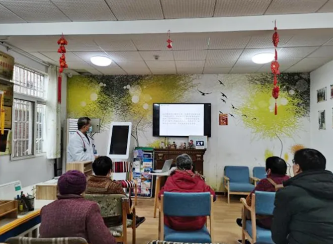 春節(jié)期間,銀海倆寶貝養(yǎng)老服務(wù)中心聯(lián)合市三醫(yī)院副主任醫(yī)師奉佳山來到紗廠街長者之家內(nèi),為工作人員普及心肌梗塞相關(guān)知識。